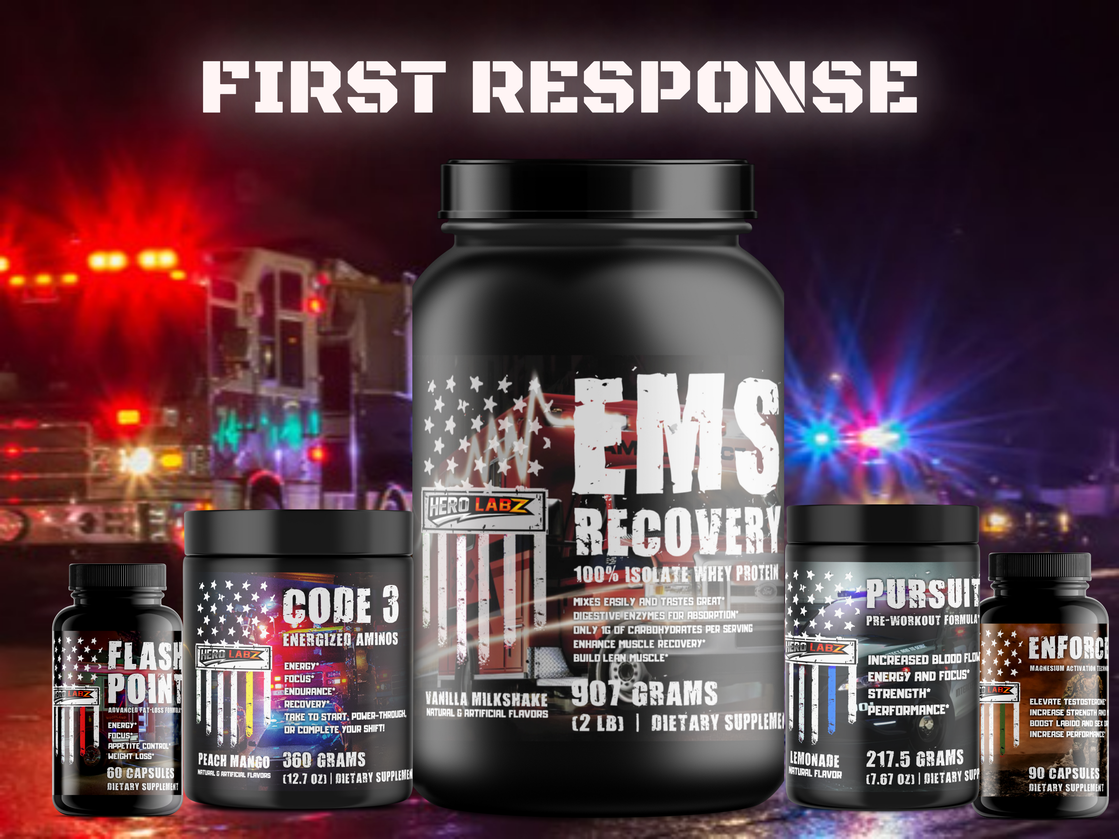 Boost your workouts with our First Responder inspired supplements: protein, amino acids, fat burners & Testosterone boosters. Heroes deserve the best.